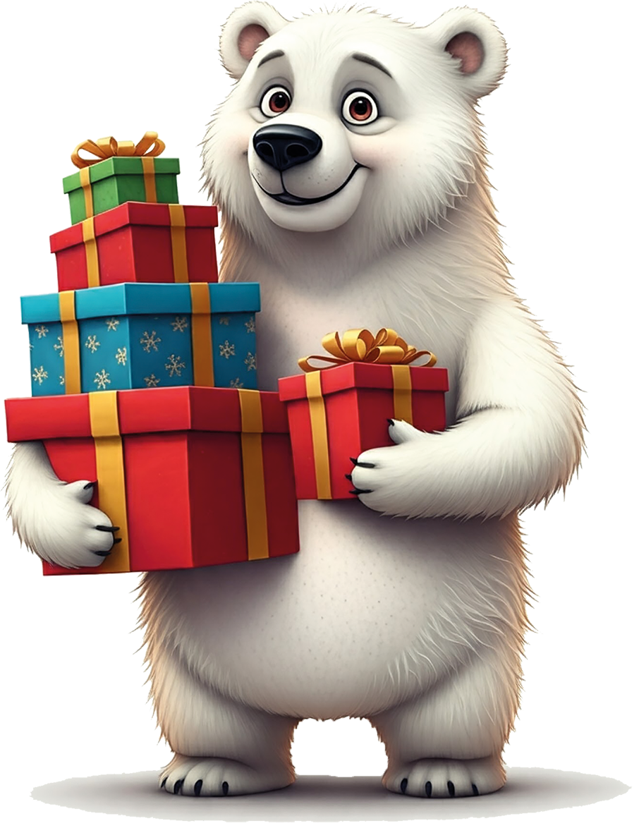 Bügelbild Eisbär mit Geschenken